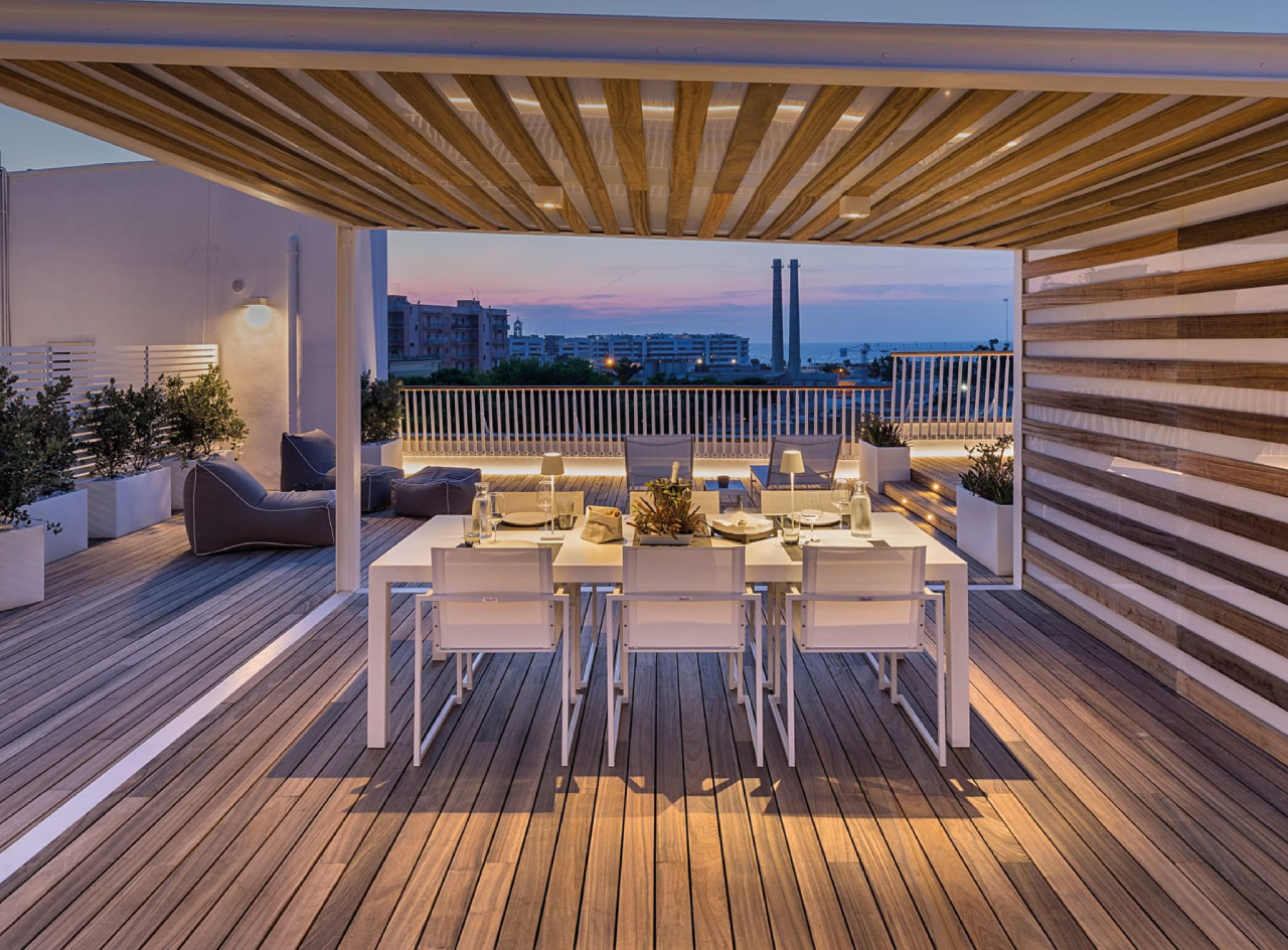 Polyvalence : le bois s’adapte aussi bien aux grandes terrasses qu’aux petits balcons ou aux abords d’une piscine.